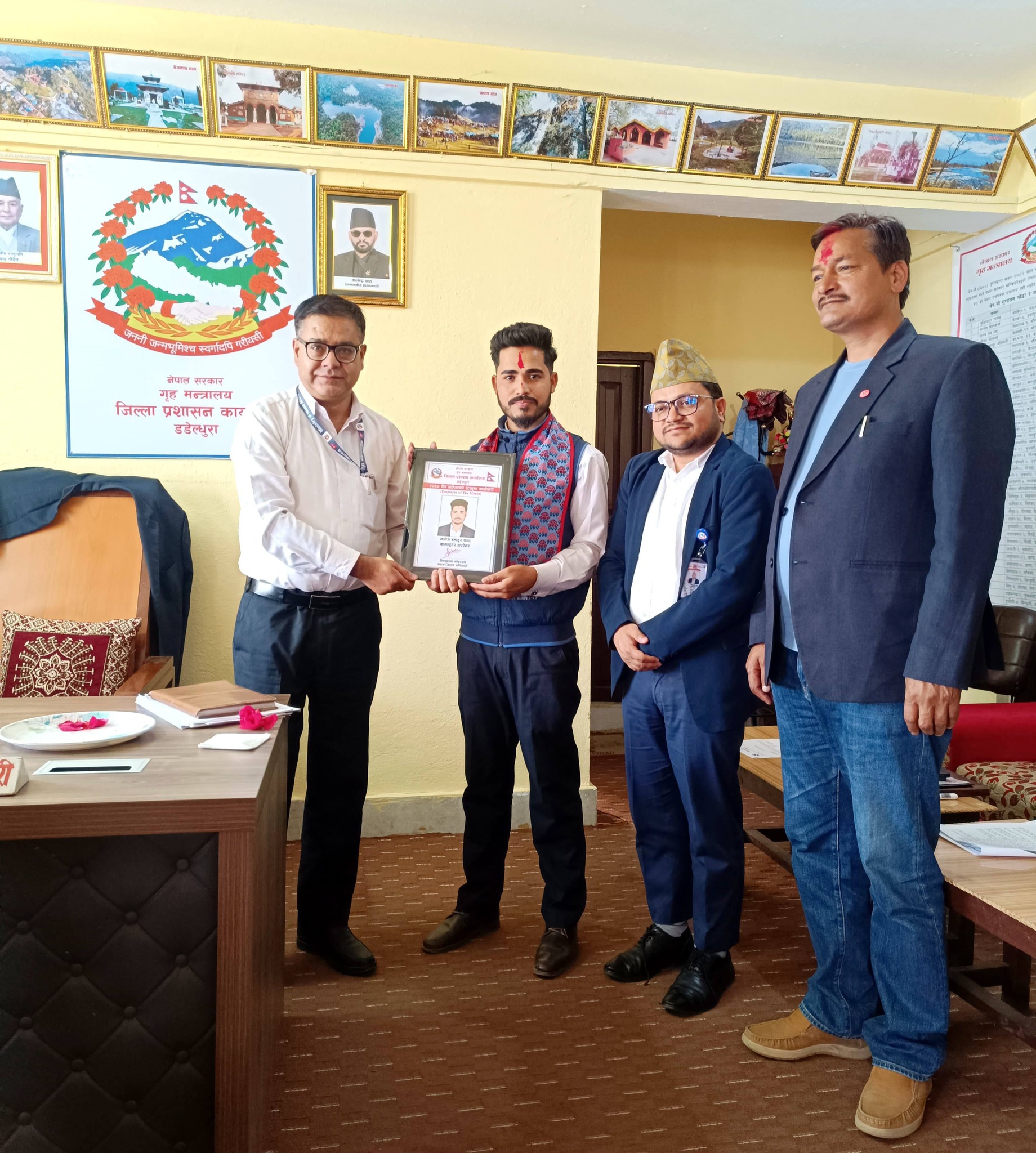 डडेल्धुरा । जिल्ला प्रशासन कार्यालय डडेल्धुराले २०८२ चैत महिनाको उत्कृष्ट कर्मचारीलाई सम्मान गरेको छ । सेवाप्रवाहलाई प्रभावकारी, छरितो र नागरिकमैत्री बनाउन महत्वपूर्ण योगदान पु¥याएको भन्दै मंगलबार एक कार्यक्रमका बीच कम्प्युटर अपरेटर मनोज बहादुर चन्दलाई सम्मान गरिएको हो ।